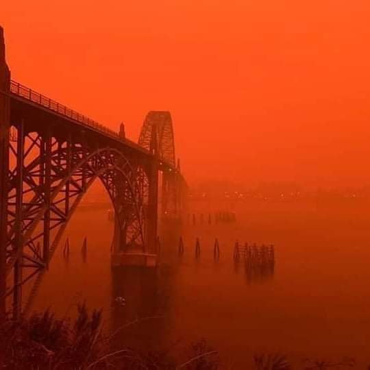 In 2020 we had a massive forest fire in our valley. It started in the middle of the night, residents had no warning. It spread quickly because of the wind. 4000 homes were destroyed. This photo I took of the bridge at our coast - over an hour away from the nearest fire and our home.